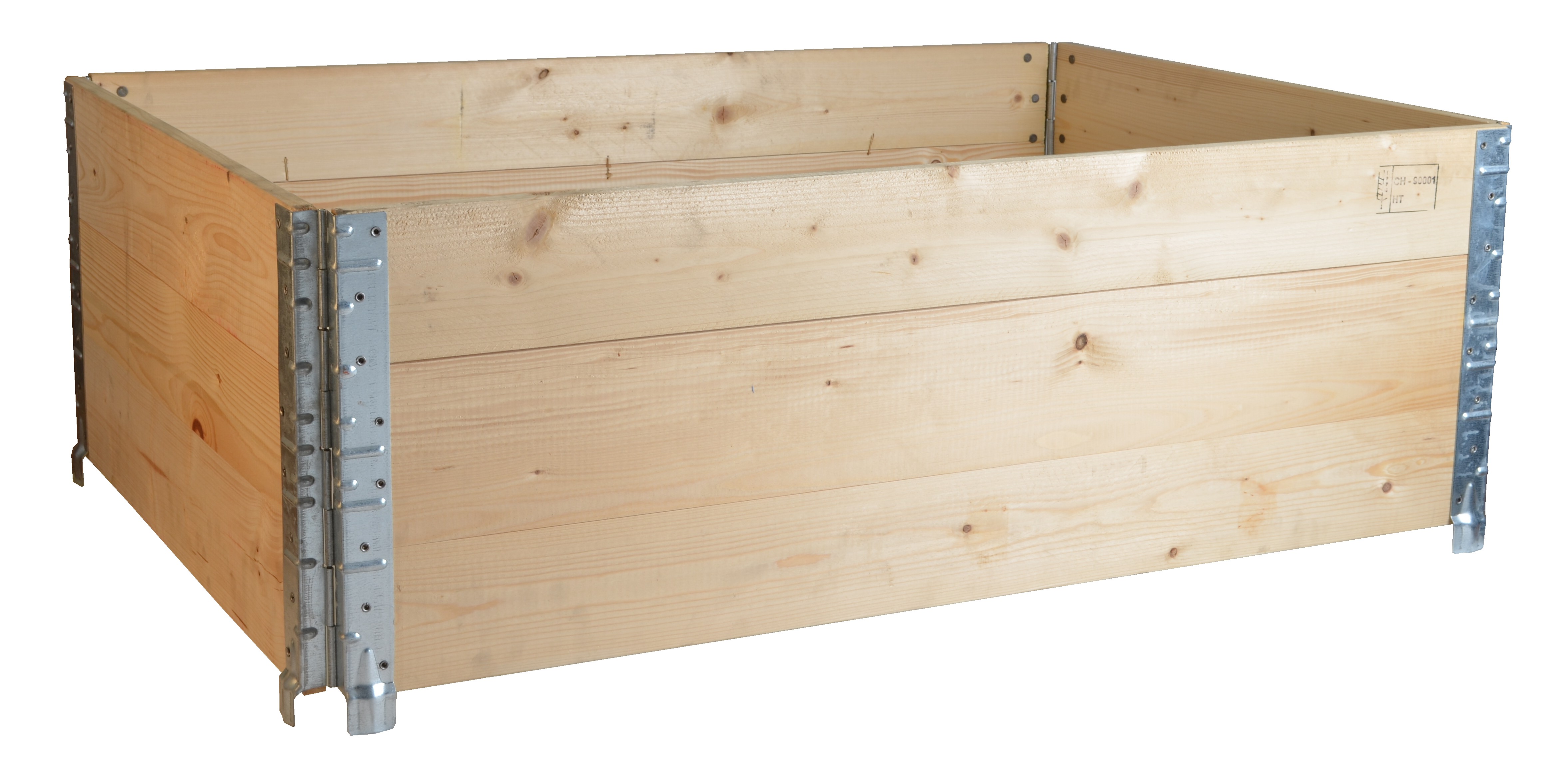 Faltbar und platzsparend durch massive Scharniere an den Ecken. Leicht und flexible modulartige Stapelbarkeit in der Höhe. Geeignet für Übersee-Export (China, USA, Kanada, Mexiko, Australien usw.)